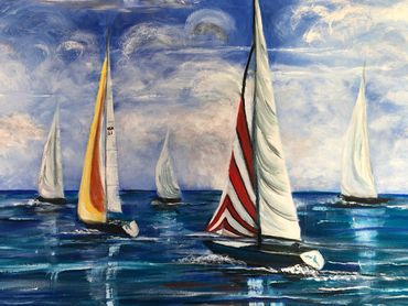 Sail Away With Me 24 X 36 Oil Painting Framed with Black and Silver $3,450.