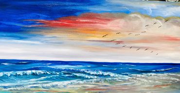 "SUNSET ON THE BEACH" 16 X 20 Oil Painting